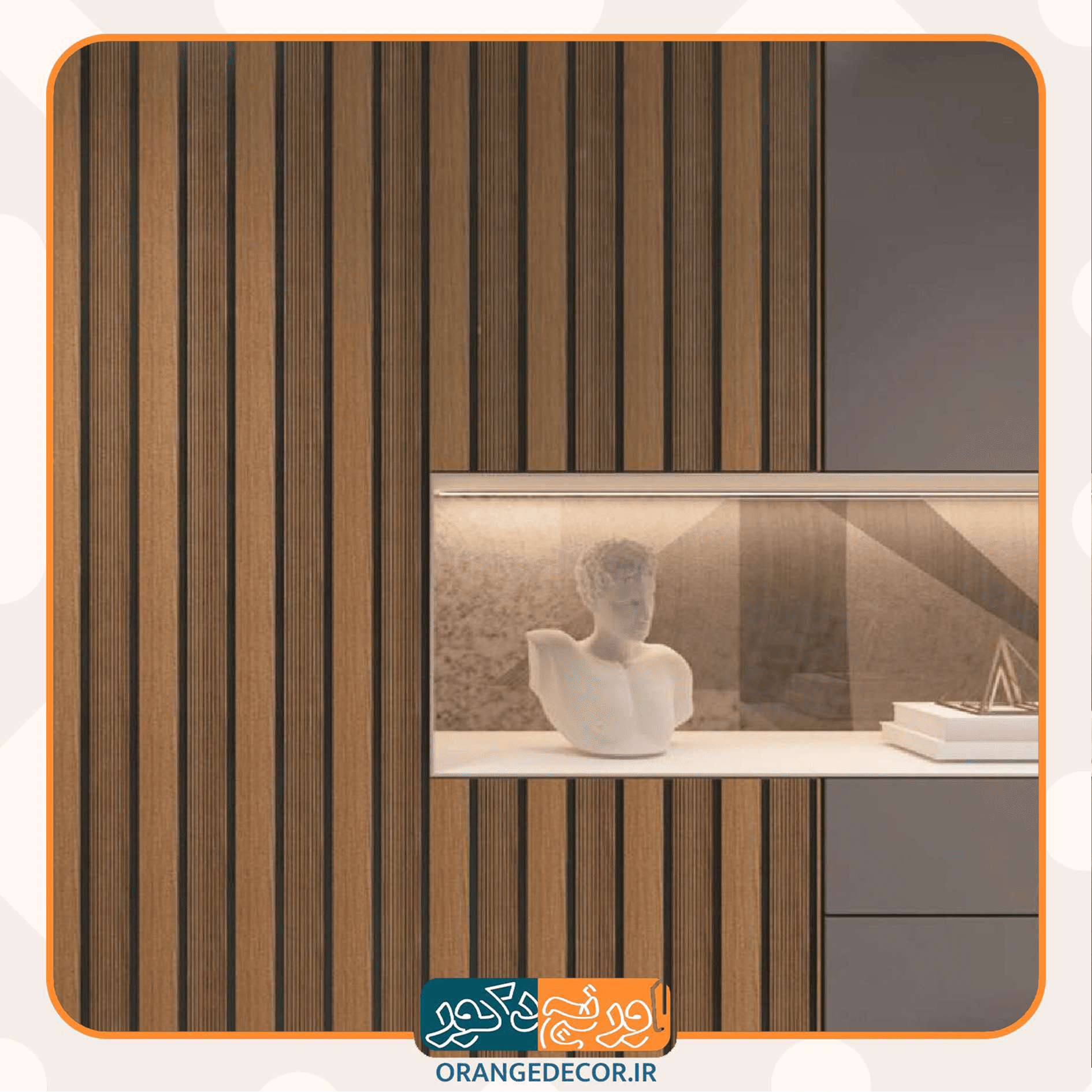 دیوارپوش پی وی سی طرح ترمووال رنگ گردویی با شیار مشکی کد 6-1302