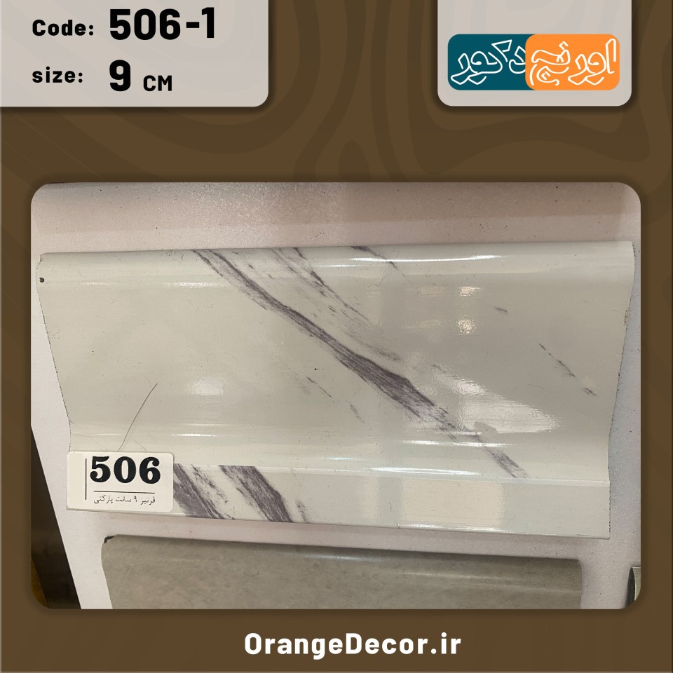 قرنیز پارکتی PVC رنگ سفید با رگه های خاکستری عرض 9 سانت کد 1-506 در طول 3 متر
