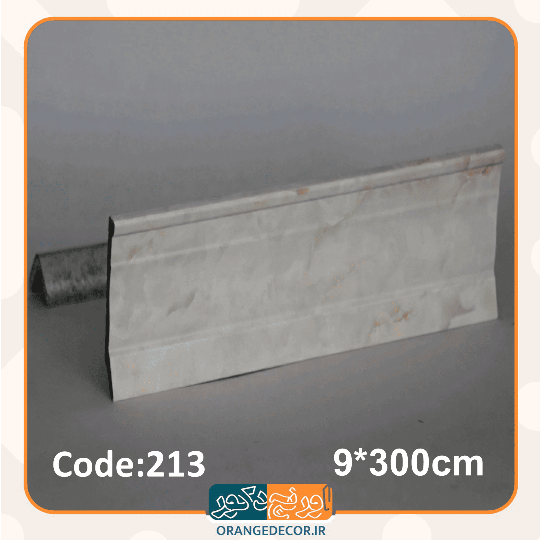 قرنیز مدرن 9 سانت سفید با رگه های بژ طرح سنگ کد 213 طول 3 متر